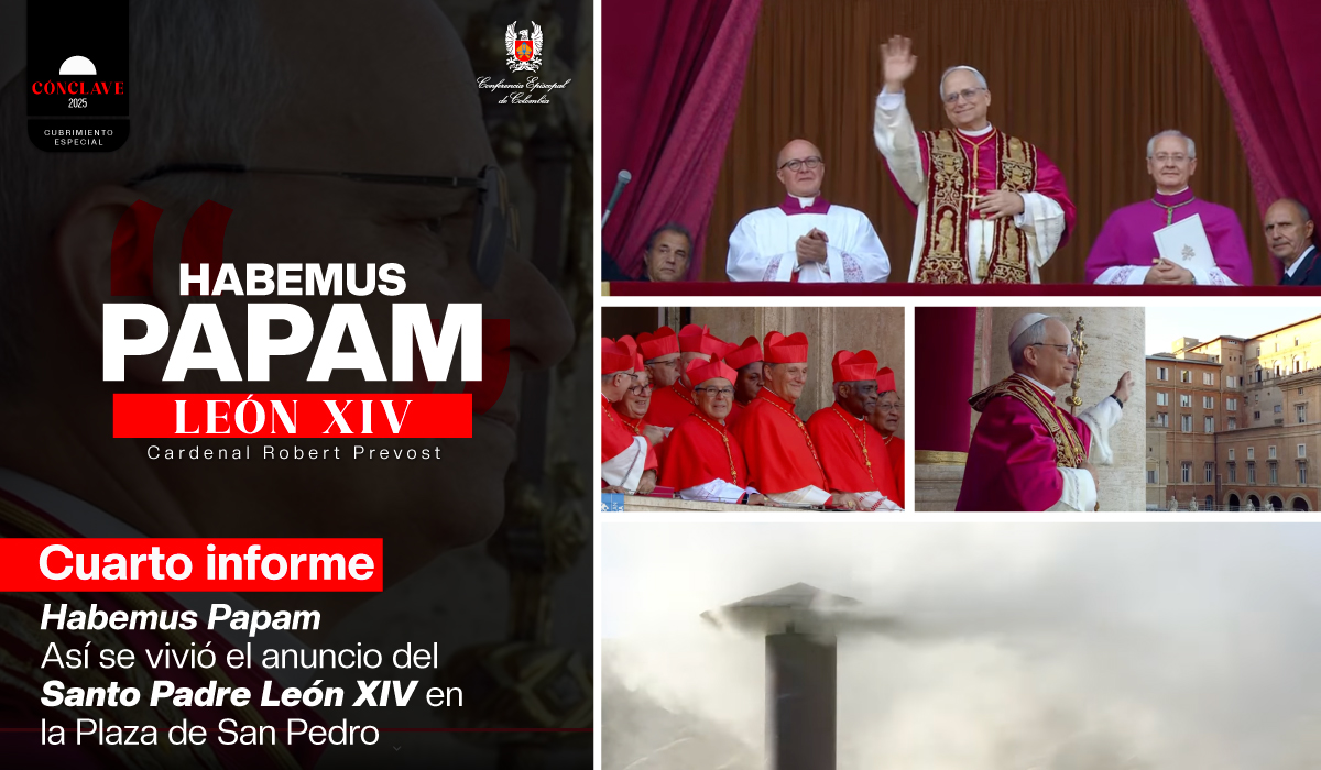 Este jueves, 8 de mayo, los 133 cardenales que participaron en el Cónclave 2025, entre ellos, el cardenal Luis José Rueda Aparicio, arzobispo de Bogotá y primado de Colombia, bajo la luz del Espíritu Santo, eligieron al 267º Obispo de Roma. El cardenal Robert Francis Prevost es el nuevo sucesor del Apóstol Pedro.El Papa León XIV se convierte en el primer Papa agustino y primer papa norteamericano de nuestra Iglesia, ha estado en Colombia y conoce muy de cerca la realidad del país y de latinoamérica. Durante muchos años ha sido misionero y obispo en Perú. Su lema episcopal es «In Illo uno unum», palabras que San Agustín pronuncia en un sermón, la Exposición sobre el Salmo 127, para explicar que «aunque los cristianos somos muchos, en el único Cristo somos uno».Mientras en la Plaza de San Pedro, millones de personas, tras conocer el anuncio y ver al nuevo Pontífice, gritaban "¡Viva el Papa León XIV!", en Colombia, los arzobispos reunidos en Comisión Permanente, en compañía del Nuncio Apostólico, viendo la transmisión, no pudieron contener su alegría y gratitud al ver al nuevo Papa que el Espíritu Santo le ha dado a la Iglesia Universal. Los obispos colombianos también se han unido en acción de gracias y han convocado a la oración por el Papa León XIV. Han convocado a todas las parroquias del país para que el próximo domingo 11 de mayo, en la Solemnidad de Jesucristo, Buen Pastor, se celebre la Eucaristía en acción de gracias a Dios por el don del nuevo Papa.Vea los momentos más emotivos, entrevistas y hechos destacados en el especial informativo de la Conferencia Episcopal de Colombia: