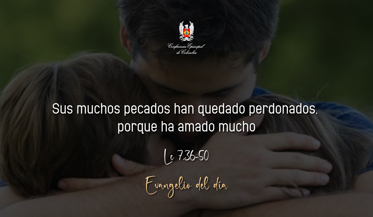 Lc 7,36-50Sus muchos pecados han quedado perdonados, porque ha amado muchoLectura del santo Evangelio según san Lucas.EN aquel tiempo, un fariseo rogaba a Jesús que fuera a comer con él y, entrando en casa del fariseo, se recostó a la mesa. En esto, una mujer que había en la ciudad, una pecadora, al enterarse de que estaba comiendo en casa del fariseo, vino trayendo un frasco de alabastro lleno de perfume y, colocándose detrás junto a sus pies, llorando, se puso a regarle los pies con las lágrimas, se los enjugaba con los cabellos de su cabeza, los cubría de besos y se los ungía con el perfume. Al ver esto, el fariseo que lo había invitado se dijo: «Si este fuera profeta, sabría quién y qué clase de mujer es la que lo está tocando, pues es una pecadora». Jesús respondió y le dijo: «Simón, tengo algo que decirte». Él contestó: «Dímelo, Maestro». Jesús le dijo: «Un prestamista tenía dos deudores: uno le debía quinientos denarios y el otro cincuenta. Como no tenían con qué pagar, los perdonó a los dos. ¿Cuál de ellos le mostrará más amor?». Respondió Simón y dijo: «Supongo que aquel a quien le perdonó más». Le dijo Jesús: «Has juzgado rectamente». Y, volviéndose a la mujer, dijo a Simón: «¿Ves a esta mujer? He entrado en tu casa y no me has dado agua para los pies; ella, en cambio, me ha regado los pies con sus lágrimas y me los ha enjugado con sus cabellos. Tú no me diste el beso de paz; ella, en cambio, desde que entré, no ha dejado de besarme los pies. Tú no me ungiste la cabeza con ungüento; ella, en cambio, me ha ungido los pies con perfume. Por eso te digo: sus muchos pecados han quedado perdonados, porque ha amado mucho, pero al que poco se le perdona, ama poco». Y a ella le dijo: «Han quedado perdonados tus pecados». Los demás convidados empezaron a decir entre ellos: «¿Quién es este, que hasta perdona pecados?». Pero él dijo a la mujer: «Tu fe te ha salvado, vete en paz».Palabra del Señor.