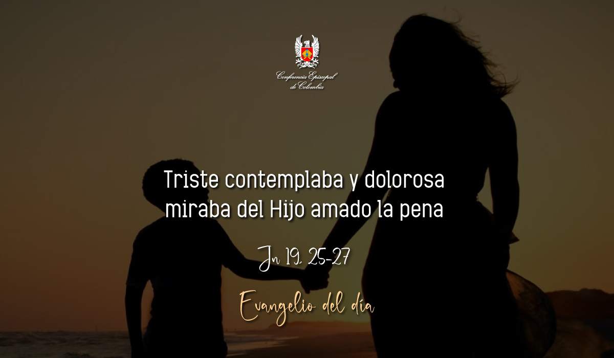 Jn 19, 25-27Triste contemplaba y dolorosa miraba del Hijo amado la pena (Stabat Mater)Lectura del santo Evangelio según san Juan.JUNTO a la cruz de Jesús estaban su madre, la hermana de su madre, María, la de Cleofás, y María, la Magdalena. Jesús, al ver a su madre y junto a ella al discípulo al que amaba, dijo a su madre: «Mujer, ahí tienes a tu hijo». Luego, dijo al discípulo: «Ahí tienes a tu madre». Y desde aquella hora, el discípulo la recibió como algo propio.Palabra del Señor.