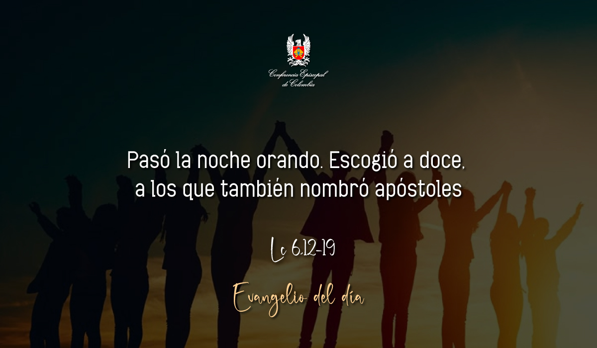Lc 6,12-19Pasó la noche orando. Escogió a doce, a los que también nombró apóstolesLectura del santo Evangelio según san Lucas.EN aquellos días, Jesús salió al monte a orar y pasó la noche orando a Dios. Cuando se hizo de día, llamó a sus discípulos, escogió de entre ellos a doce, a los que también nombró apóstoles: Simón, al que puso de nombre Pedro, y Andrés, su hermano; Santiago, Juan, Felipe, Bartolomé, Mateo, Tomás, Santiago el de Alfeo, Simón, llamado el Zelote; Judas el de Santiago y Judas Iscariote, que fue el traidor. Después de bajar con ellos, se paró en una llanura con un grupo grande de discípulos y una gran muchedumbre del pueblo, procedente de toda Judea, de Jerusalén y de la costa de Tiro y de Sidón. Venían a oírlo y a que los curara de sus enfermedades; los atormentados por espíritus inmundos quedaban curados, y toda la gente trataba de tocarlo, porque salía de él una fuerza que los curaba a todos.Palabra del Señor.
