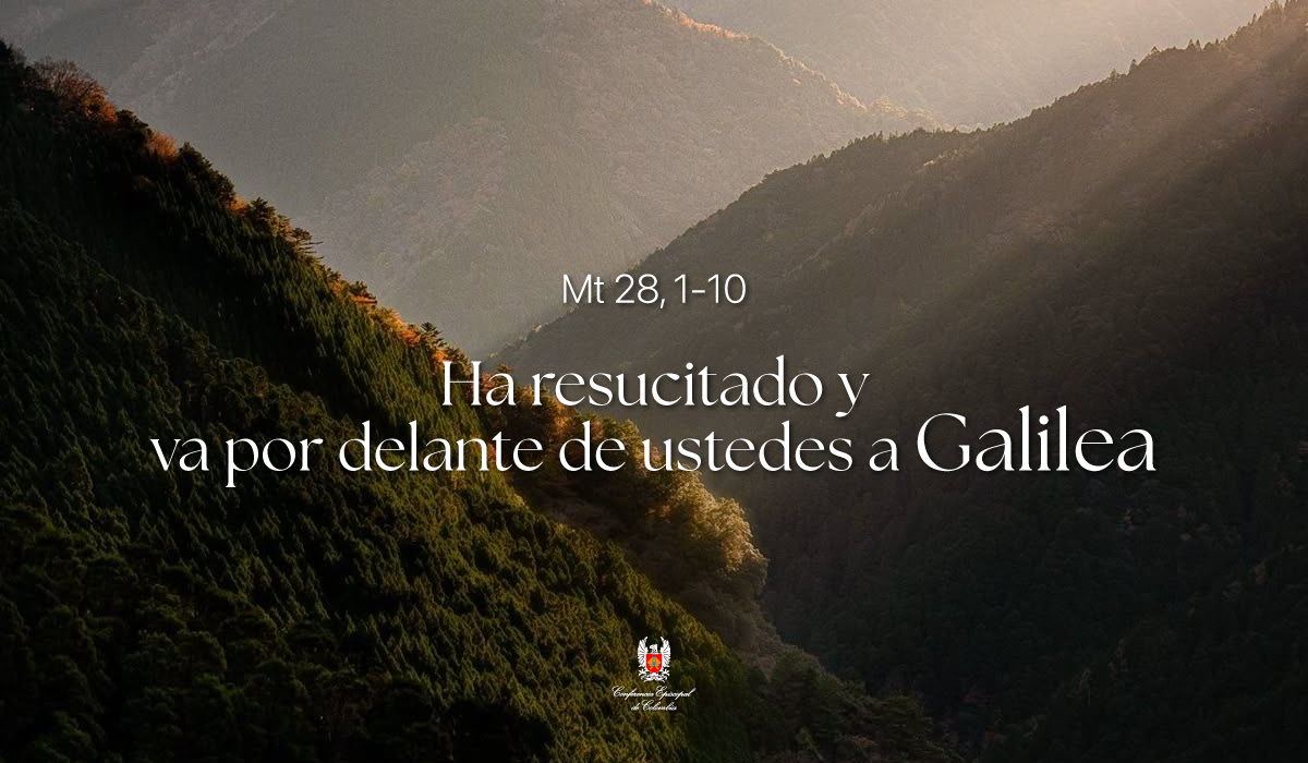 Mt 28, 1-10Ha resucitado y va por delante de ustedes a GalileaLectura del santo Evangelio según san Mateo.PASADO el sábado, al alborear el primer día de la semana, fueron María la Magdalena y la otra María a ver el sepulcro. Y de pronto tembló fuertemente la tierra, pues un ángel del Señor, bajando del cielo y acercándose, corrió la piedra y se sentó encima. Su aspecto era de relámpago y su vestido blanco como la nieve; los centinelas temblaron de miedo y quedaron como muertos. El ángel habló a las mujeres:«Ustedes no teman, ya sé que buscan a Jesús el crucificado. No está aquí: ¡ha resucitado!, como había dicho. Vengan a ver el sitio donde yacía y vayan aprisa a decir a sus discípulos: “Ha resucitado de entre los muertos y va por delante de ustedes a Galilea. Allí lo verán”. Miren, se lo he anunciado».Ellas se marcharon a toda prisa del sepulcro; llenas de miedo y de alegría corrieron a anunciarlo a los discípulos.De pronto, Jesús les salió al encuentro y les dijo:«Alégrense».Ellas se acercaron, le abrazaron los pies y se postraron ante él.Jesús les dijo:«No teman: vayan a comunicar a mis hermanos que vayan a Galilea; allí me verán».Palabra del Señor.