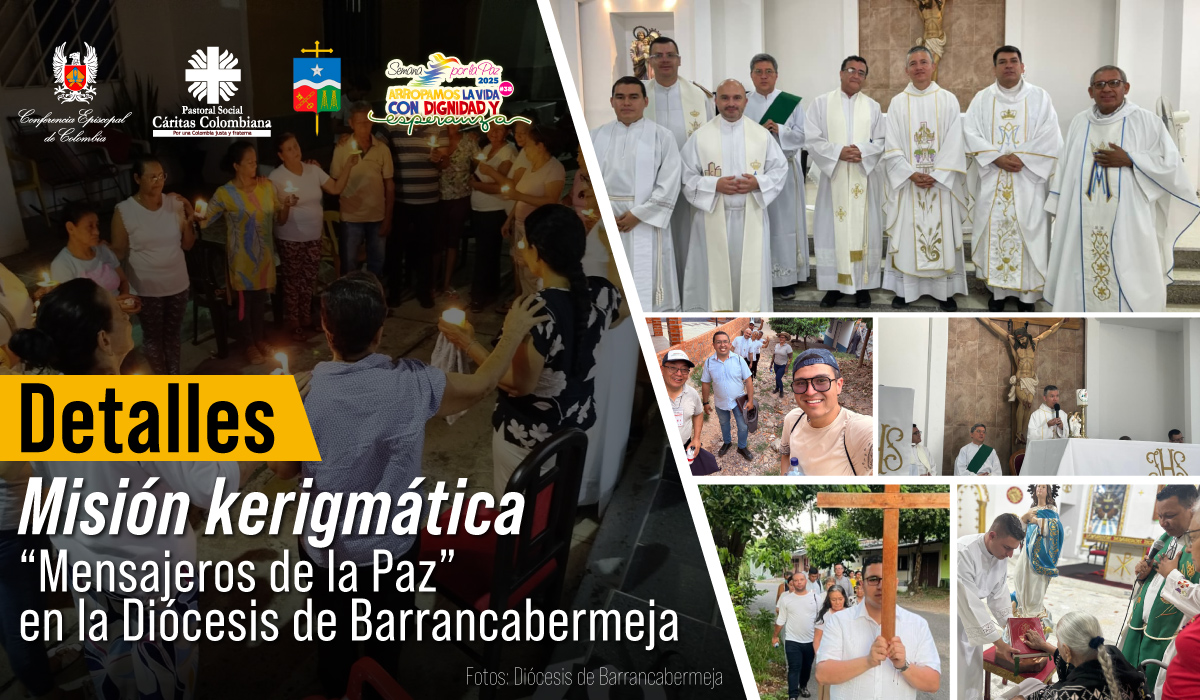 Entre el 6 y el 13 de septiembre, en el marco de la Semana por la Paz 2025, la Diócesis de Barrancabermeja vivió una intensa jornada de evangelización con la misión “Mensajeros de Paz”. Guiados por el versículo “Mira que estoy a la puerta y llamo” (Ap 3,20), seis sacerdotes y 61 seminaristas del Seminario Nacional Cristo Sacerdote de La Ceja (Antioquia) visitaron quince parroquias, llevando un mensaje de fe y cercanía a las familias y comunidades.La misión, impulsada por monseñor Ovidio Giraldo Velázquez, Obispo de la Diócesis, buscó ser el reflejo de la “Iglesia en salida”, que proponía el Papa Francisco, especialmente, para llegar a las periferias existenciales. El objetivo central de esta misión fue la creación de “casas de reunión”, espacios destinados a fortalecer la fe, compartir la Palabra y tejer lazos fraternos que perduren en el tiempo.Esta iniciativa pastoral adquiere una importancia crucial en el contexto actual de Barrancabermeja. Esta región del Magdalena Medio continúa enfrentando complejos desafíos de violencia, presencia de grupos armados ilegales y afectaciones a la población civil. En este escenario, iniciativas que promueven la paz, la reconciliación y la reconstrucción del tejido social desde la base, como la llevada a cabo por la Diócesis, no son solo actos de fe, sino también una respuesta concreta a la necesidad de espacios de protección, dignidad y esperanza para las comunidades.Un trabajo de visita y encuentro“Hemos tenido una experiencia muy bonita, de visiteo, el encuentro con las personas, con las familias, encuentros comunitarios... celebraciones piadosas y la Santa Eucaristía”, compartió monseñor Giraldo, reflejando el espíritu de cercanía que caracterizó la iniciativa.Esta misión se enmarca dentro del Plan de Misión y Pastoral Integral de la Diócesis, que promueve la formación de pequeñas comunidades eclesiales como núcleos vivos de fe, esperanza y caridad; un caminar pastoral que se articula con el lema de esta 38ª Semana por la Paz: “Arropamos la vida con dignidad y esperanza”, reflejando la necesidad de ser Iglesia samaritana en medio de un pueblo que anhela reconciliación, justicia y paz.El diácono Brayan Mayorga explicó otro una de las grandes metas: “El Sistema Integral de Evangelización tiene como propuesta fortalecer la comunidad para lograr algún día tener una comunidad más fraterna”.La post-misión: el trabajo continúaEl éxito de la misión se medirá por su continuidad. Carlos Patiño, seminarista de la diócesis, destacó el siguiente paso: “De aquí en adelante simplemente es coordinar muy bien la post misión, donde nuestros laicos, en estos grupos y casas de reunión, seguirán con esa labor de kerigma, conformando más en la fe a nuestros fieles”.La misión “Mensajeros de Paz” dejó una semilla de esperanza en las comunidades visitadas. Con la oración compartida y el testimonio de los misioneros, la diócesis renueva su propósito de ser fermento de paz y faro de luz en la región.Vea el informe audiovisual a continuación:
