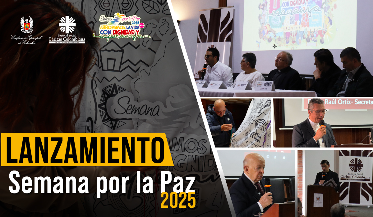 Con el lema “Arropemos la vida con dignidad y esperanza”, inició este lunes 1 de septiembre la 38ª Semana por la Paz, una de las apuestasmás importantes del país, que, este año, extenderá sus actividades durante todo el mes. La iniciativa, animada por la Iglesia Católica y más de 100 organizaciones sociales, se erige como un puente de esperanza que empieza a ser construido desde los territorios, ante la violencia y la fragmentación social que hoy generan tanto dolor e incertidumbre en el país.El lanzamiento oficial se realizó el pasado 27 de agosto en la sede del Episcopado Colombiano en Bogotá. Fue liderado por el Secretariado Nacional de Pastoral Social – Cáritas Colombiana y contó con la participación de representantes de la Iglesia, REDEPAZ, el Consejo Nacional de Paz, la cooperación internacional y múltiples organizaciones sociales.Al cierre del evento, se realizó “la primera puntada” en “la colcha de la paz que arropa la vida”, un acto simbólico de esta creación conjunta; un ejercicio artesanal que se replicará en toda Colombia y que buscará visibilizar el trabajo colectivo de cientos de organizaciones e iniciativas que mantienen viva la paz en los territorios.Un llamado a la acción y la cercaníaEl padre Raúl Ortiz Toro, Secretario Adjunto de la Conferencia Episcopal de Colombia, explicó el sentido del lema: “Arropar significa ser cercanos, cuidar al otro, estar pendientes de lo que también el otro necesita, pero sobre todo, con dignidad...Que no nos dejemos vencer, que sigamos luchando, porque la esperanza nos ayuda a no perder la fuerza, la motivación”.Por su parte, monseñor Héctor Fabio Henao, delegado de los Obispos para las relaciones Iglesia-Estado, señaló la relevancia de esta iniciativa: “Es urgente sacar la violencia del mundo, de la política y de la vida social del país. Y por otra parte, tenemos que encontrar el camino de la paz, redescubrir el camino de la paz es un desafío para toda la sociedad colombiana”.El rol de la sociedad civil y la comunidad internacionalEl evento contó con la intervención del Comisionado de Paz, Otty Patiño, quien se dirigió a las organizaciones sociales que hacen parte de Semana por la Paz e hizo referencia al estado actual de los diálogos con actores armados:“Todo eso tiene que ver con crear una paz real y una paz duradera. Lo que hemos querido hacer hasta ahora es crear procesos cuya irreversibilidad sea tan notable, que al próximo gobierno, sea cualquiera sea la ideología política que tenga, le generen, digamos, no una imposibilidad, pero sí un alto costo devolverse de ahí, echar para atrás”.Por su parte, Cristian Cabrera, director de REDEPAZ enfatizó en la tarea colectiva: “Tenemos la responsabilidad de reflexionar sobre el mañana que queremos dejar, un mañana donde nuestros niños y niñas crezcan libres del miedo, donde sus juegos y sueños no sean interrumpidos por la violencia, sino que sean acompañados por oportunidades”.El padre Ortiz Toro también destacó el papel crucial de las regiones: “Y en regiones de periferia, precisamente por estar tan lejanas del centro, resultan siendo, “el caldo de cultivo” para los actores armados. Y por eso allá también hay comunidades que son gestoras de paz”.El apoyo internacional también estuvo presente durante el lanzamiento. Fabián Hayos, jefe de misión adjunto de la Embajada Suiza, reiteró el compromiso de su país: “Desde hace 25 años el compromiso con la paz ha sido una prioridad para la presencia suiza en Colombia. Contribuimos a la construcción de paz mediante el acompañamiento a procesos de diálogo y negociación, el apoyo a la implementación de acuerdos, incluido el Acuerdo Final de 2016, así como la promoción de la democracia y la participación ciudadana”.Un legado histórico que mira al futuro con esperanzaLa Semana por la Paz nació en 1987 como una respuesta ética frente al asesinato de líderes en los territorios, los ataques a comunidades y la exclusión impuesta por la guerra. Hoy, es un legado histórico para la pedagogía, la memoria histórica y la construcción de consensos mínimos que le permiten al país avanzar hacia una paz duradera y con justicia social.Ángela Jaramillo, líder de Semana por la Paz, hizo un llamado a la movilización ciudadana dese iniciativas como esta: “Colombia, lamentablemente, necesita que sigamos realizando Semana por la Paz, que la ciudadanía siga levantando su voz y diciendo no más a la guerra, no más armas, no más conflicto. Todas y todos podemos levantar nuestra voz, pero sobre todo tejer diálogos para arropar la vida con dignidad y esperanza. La Semana por la Paz nos ofrece la oportunidad de mirar juntos y juntas hacia atrás los pequeños y grandes logros y a los obstáculos superados. Y de la misma manera, es una oportunidad para mirar hacia adelante, hacia el futuro que queremos construir como sociedad”.Las actividades que se realizarán durante este mes septiembre en las diferentes jurisdicciones eclesiásticas del país incluirán momentos celebrativos, foros, encuentros comunitarios, actos culturales y expresiones artísticas, que buscan visibilizar las resistencias locales, activar la participación ciudadana y reafirmar que la paz se construye desde los territorios.Pronunciamiento oficial de lanzamiento Semana por la Paz 2025Al cierre del evento de lanzamiento, los voceros leyeron una mensaje que recuerda que Semana por la Paz se reconoce como un escenario estratégico de pedagogía y movilización ciudadana para transformar las causas estructurales de la violencia y trabajar por una paz duradera con justicia social.Vea a continuación el informe audiovisual sobre el lanzamiento de Semana por la Paz 2025:Si desea acceder al material comunicativo o conocer en detalle las actividades programadas a nivel nacional durante Semana por la Paz 2025, haga clic aquí.