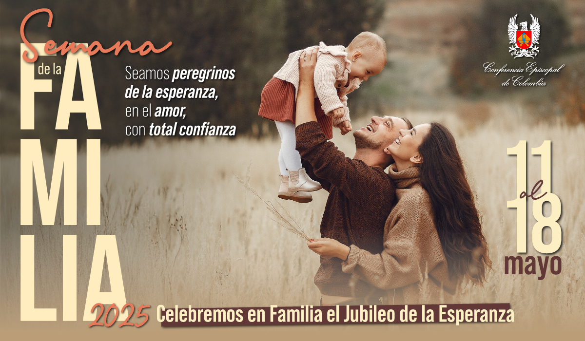 “La familia es el primer espacio donde se aprende a amar como Cristo nos enseñó”Del 11 al 18 de mayo de 2025, la Iglesia en Colombia celebrará la Semana de la Familia 2025, una iniciativa del Departamento de Matrimonio y Familia de la Conferencia Episcopal de Colombia, en el marco del Año Jubilar convocado por el Papa Francisco.Con el lema inspirado en la Bula Spes non confundit (“La esperanza no defrauda”), esta semana busca renovar el amor, la fe y la misión de las familias como verdaderas Iglesias domésticas. Se trata de un llamado a vivir el Jubileo como un camino de renovación interior, en el que cada hogar se convierta en testimonio vivo de esperanza, gracia y unidad.Como parte de esta celebración, se ha preparado un subsidio especial que ofrece orientaciones pastorales, celebraciones litúrgicas, momentos de oración, reflexiones y actividades concretas para fortalecer los vínculos familiares y acompañar el proceso de conversión al que invita este Año de Gracia.La guía propone pilares prácticos para vivir el Jubileo en familia, promoviendo hábitos que impulsen la transformación personal y comunitaria, con el objetivo de alcanzar la finalidad jubilar: una renovación del corazón en el camino hacia Cristo, nuestra esperanza.Vea el mensaje del presidente de la Comisión Episcopal de Matrimonio y Familia: