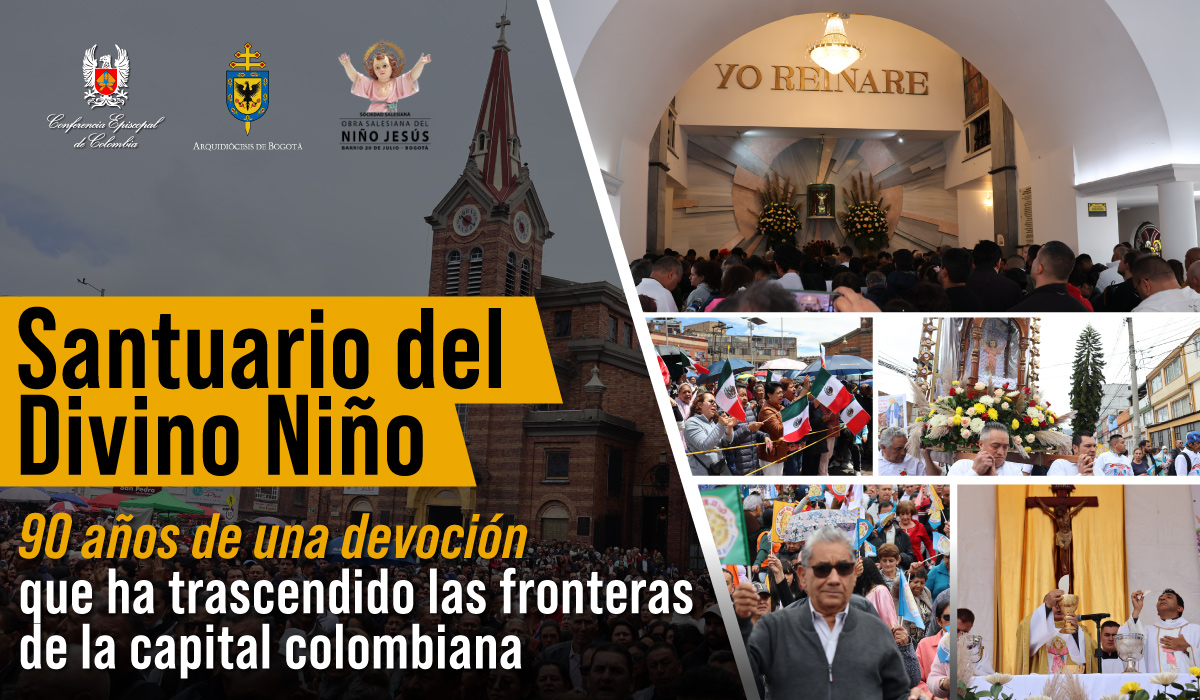 Con la participación de más de diez mil personas, el Santuario del Divino Niño Jesús en el barrio Veinte de Julio en Bogotá fue el epicentro de una celebración histórica: los 90 años de una de las devociones más arraigadas y queridas en Colombia. La fiesta central, que se llevó a cabo el domingo 7 de septiembre, no fue solo una efeméride religiosa, sino una vibrante muestra de fe popular que refleja el significado profundo de este símbolo para la identidad nacional.Una celebración de nueve días y noventa añosLos actos conmemorativos iniciaron con el tradicional rezo de la novena. El sábado 6 de septiembre, se ofreció un almuerzo solidario para mil niños de las casas salesianas y se celebró una Eucaristía presidida por monseñor Alejandro Díaz García, obispo auxiliar de Bogotá.Al día siguiente, desde primeras horas de la mañana, miles de peregrinos llegaron al santuario para recibir el sacramento de la Reconciliación, participar en las eucaristías y elevar sus plegarias frente a la imagen original del Divino Niño, custodiada en una capilla lateral del templo.La misa central del mediodía, celebrada por el padre Rubén Darío Jaramillo, superior salesiano, fue precedida por la emblemática procesión. A pesar de la lluvia, la imagen recorrió las calles del barrio Veinte de Julio sobre los hombros de un grupo de peregrinos mexicanos—testimonio de la internacionalización de la devoción—, acompañada por el rezo del rosario, cantos y los niños de la pastoral salesiana vestidos a semejanza del Niño Jesús. El retorno de la imagen al santuario, recibida con repique de campanas y aplausos, fue uno de los momentos más emotivos.El significado de una devoción nacionalEn su homilía, el padre Jaramillo profundizó en el significado de la devoción, preguntándose “¿Quién es el Niño Jesús?” y definiéndolo como “Aquel que crecía en gracia, sabiduría y santidad”. Hizo un llamado a los fieles a seguir su ejemplo para “construir un país con gracia, sabiduría y santidad”. “Solamente así venceremos la mentira, el engaño, la falsedad, la corrupción; solamente así seremos la humanidad colombiana que el Señor quiere”, afirmó, conectando la fe con un mensaje de esperanza y regeneración social para el país.Para millones de colombianos, el Divino Niño es mucho más que una imagen religiosa, es un símbolo de consuelo, esperanza y resiliencia. En un país que ha enfrentado décadas de conflicto e incertidumbre, la promesa atribuida a Jesucristo en 1636 a la venerable Margarita del Santísimo Sacramento —“Todo lo que quieras pedir, pídelo por los méritos de mi infancia, y tu oración será escuchada”— resuena con fuerza. El santuario se erige así como un faro de fe donde convergen ciudadanos de todas las clases sociales para pedir, agradecer y encontrar paz.Raíces históricas en Colombia y devoción globalEsta devoción nació hace nueve décadas de la mano del sacerdote salesiano italiano Juan del Rizzo, quien llegó al entonces marginado barrio Veinte de Julio con un mensaje sencillo y poderoso: “Jesús quiere ser honrado en el misterio de su niñez y a Él le agrada mucho cuanto se haga en favor de los niños pobres y de las gentes más necesitadas”.La necesidad de albergar a la creciente comunidad de devotos llevó a la construcción del santuario. Su primera piedra se bendijo el 19 de marzo de 1937, según planos de los coadjutores salesianos Juan Buscaglione y Constantino de Castro. El templo se inauguró solemnemente en 1942, erigido ya como parroquia por monseñor Ismael Perdomo, arzobispo de Bogotá entre 1928 y 1950, hoy Venerable sobre el que avanza su proceso de beatificación.Lo que comenzó en el sur de Bogotá hoy es un fenómeno global. La devoción se ha extendido con fuerza a países como México, Perú, Ecuador y República Dominicana, llevando consigo un pedazo de la cultura y la fe colombiana.La ceremonia concluyó con la bendición de las miles de imágenes que los fieles llevaron consigo, un ritual que simboliza la perpetuación de una fe que, 90 años después, sigue más viva y vigente que nunca, reinando en el corazón de Colombia.Vea el video sobre la celebración a continuación:Ver esta publicación en InstagramUna publicación compartida por Conf. Episcopal de Colombia (@episcopadocol)